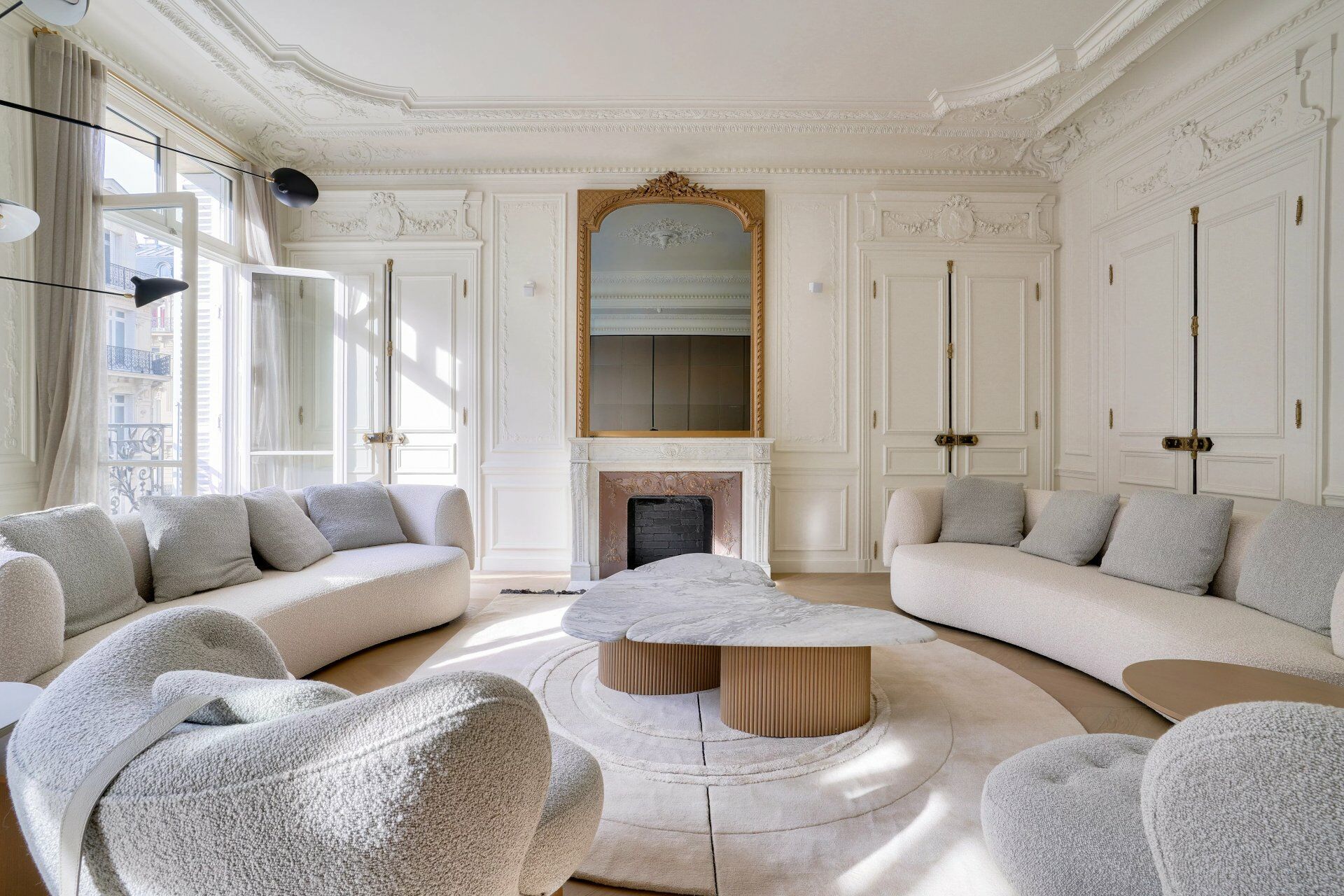Golden Triangle/George V. This magnificent near 160 sqm apartment on the 3rd floor of a fine freestone building with a lift is south-facing and features over 3.30 metre high ceilings. Renovated throughout by an interior decorator, it includes a spacious living/reception...