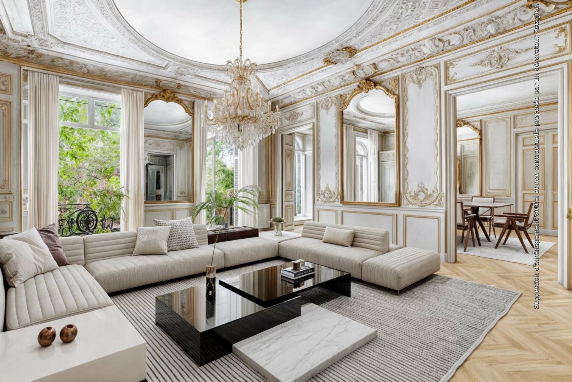 This particularly spacious and elegant apartment on the second floor of a luxurious mid 19th century building commands open views of leafy Parc Monceau. Boasting superb period features including 4.20 metre high ceilings, it includes a sumptuous triple living/reception...