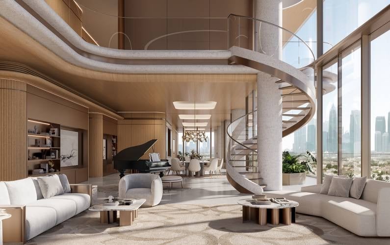 This ultra-luxurious waterfront triplex will enjoy stunning views of the Dubai Water Canal, Safa Park and skyline including the Burj Khalifa and... -
