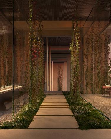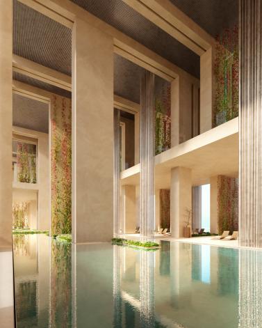 Vast interiors evoke the feeling of traditional Arabian courtyards. Soaring ceilings, placid pools and cascading greenery define these hybrid spaces, which are not only aesthetically enchanting but also functional. They enhance thermal comfort, facilitate cross-ventilation and reduce reliance on energy-consuming air conditioning.