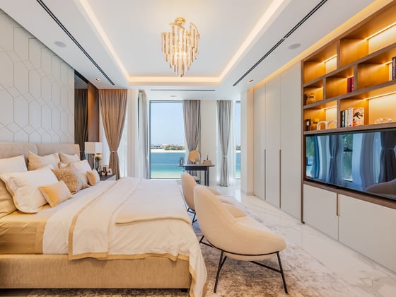 On the iconic Palm Jumeirah, this five-bedroom villa epitomises Dubai’s famed beachfront luxury. The 8532.66 sq. ft. residence on a 7805 sq. ft plot is luxuriously furnished, and offers a calm retreat set against enchanting waves. A chic exterior overlooks an...