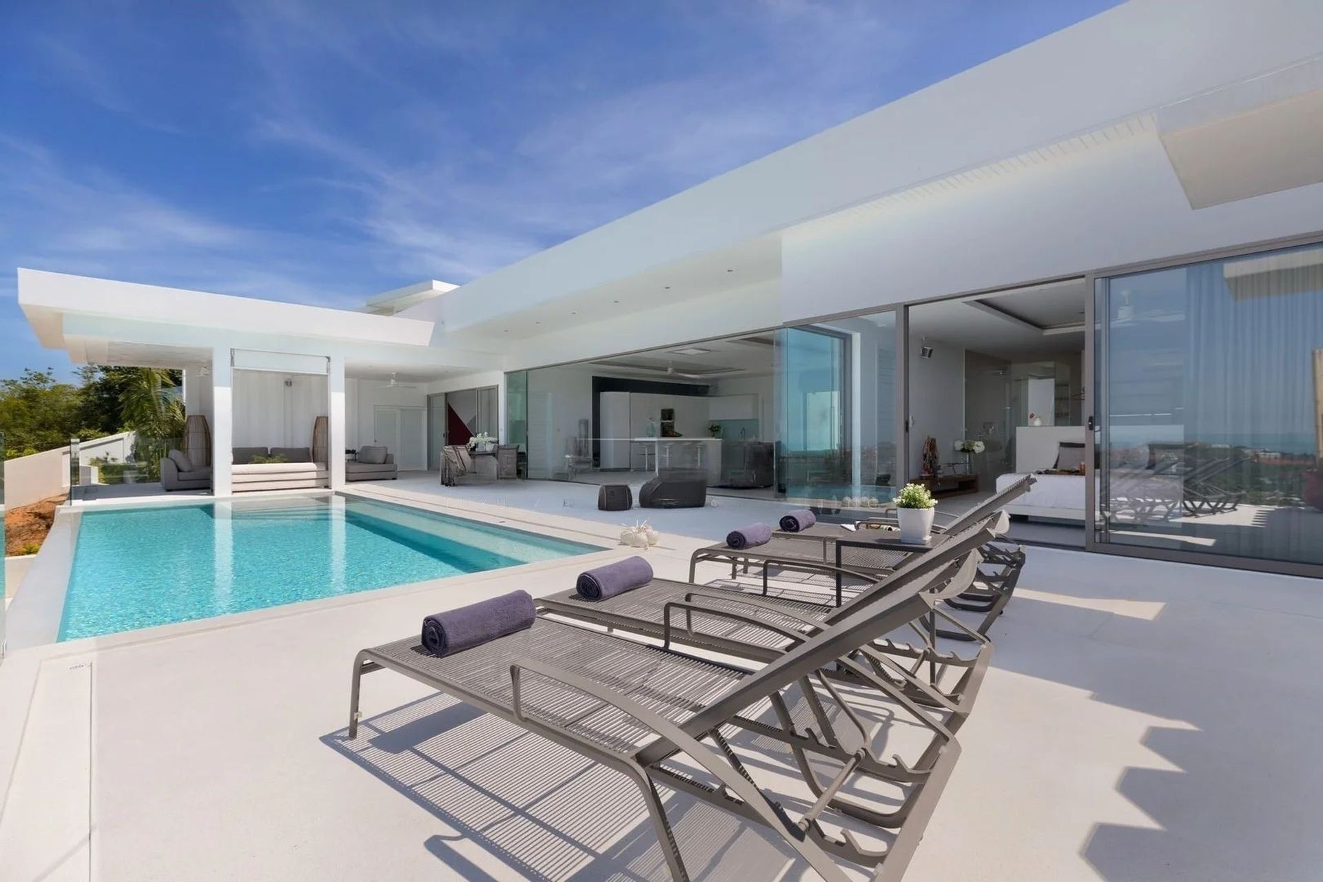 Perched atop the scenic hills of Plai Laem, this stunning 4-bedroom villa offers a luxurious escape with breathtaking views of the glistening sea and the captivating island of Koh Phangan.Commanding an enviable position, this villa is more than just a home—it's an...