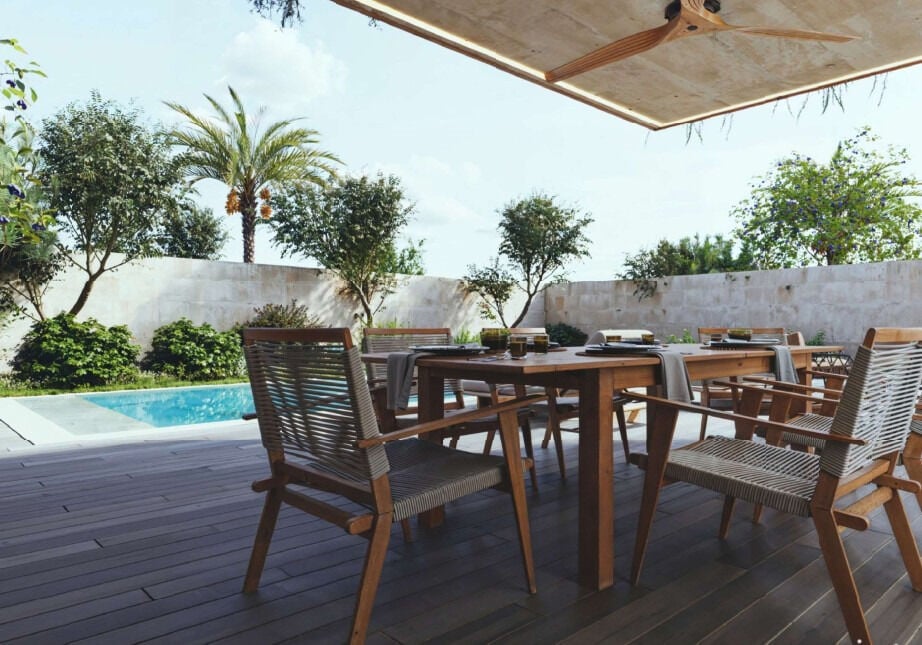 Architecturally, the villa balances clean, contemporary lines with a layout that prioritises practicality. Large apertures maximise light without sacrificing privacy, while the overall footprint ensures that each area feels purposeful rather than excessive. The relationship between indoor and outdoor spaces is a defining element, particularly on the ground floor, where the pool deck becomes a natural focal point for daily life and social gatherings.