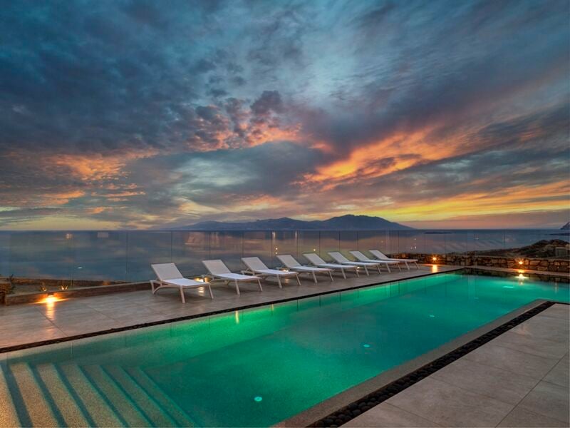 This exceptional estate is the epitome of elegance in a gloriously panoramic setting. With captivating views of Delos Island and the sunset, its beautiful landscaped grounds are set directly on the sparkling waters of the Aegean. A tale of two villas, the estate offers a...